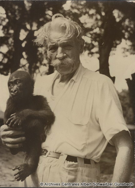 "Die Glocken haben soeben die Karfreitagsgottesdienst in meinem Heimatdorfe Günsbach in den Vogesen ausgeläutet. Da erschien der Zug an der Biegung des Waldrandes. Die Reise nach Afrika begann. Es galt Abschied zu nehmen. Wir standen auf der Plattform des letzten Wagens. Ein letztes Mal tauchte die Kirchturmspitze zwischen den Bäumen auf. Wann werden wir uns wiedersehen? In Dakar, dem großen Hafen der Senegalkolonie, betraten meine Frau und ich zum ersten Mal die afrikanische Erde, der wir unser Leben widmen wollten. Es war uns feierlich zu Mute. Meine Frau und ich kamen mit 70 Kisten, die das zur Ausrüstung des Spitals Erforderliche enthielten, in Lambarene an."